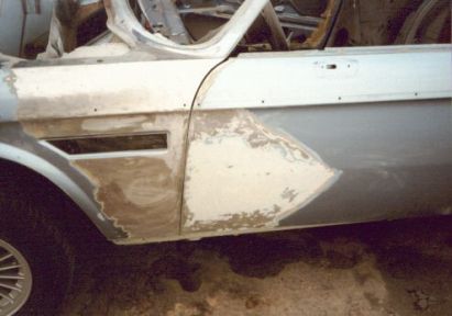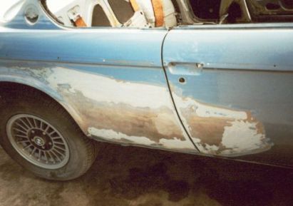 Unter der alten Lackschicht kamen dann diverse zugespachtelte Dellen zum Vorschein.
