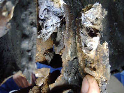 Viele Roststellen wurden einfach nur verspachtelt, oder unfachmännisch mit Blechflicken ausgebessert.