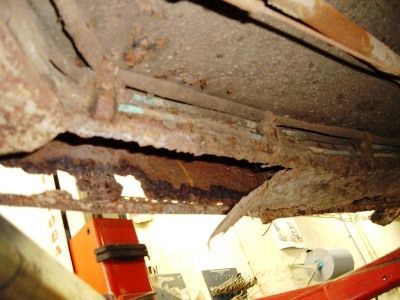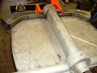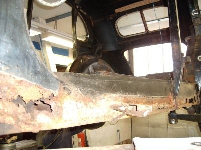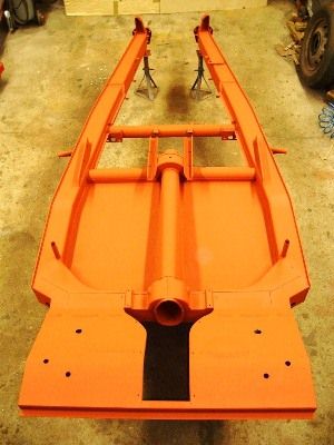Bodenblech mit dem Kardantunnel aus dem alten Rahmen ausgetrennt und gesandstrahlt.