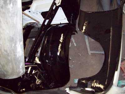 von innen. Ein strapazierfähiger Speziallack, in der späteren Wagenfarbe,