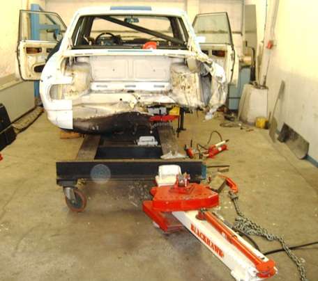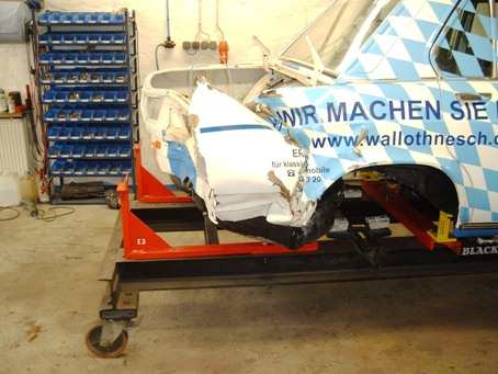 Zunächst wurde das Fahrzeug komplett zerlegt und die Karosserie auf der Richtbank