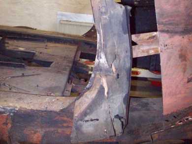 in Form von gebrochenen Holzteilen der A-Säulen.
