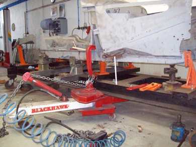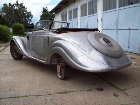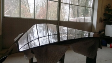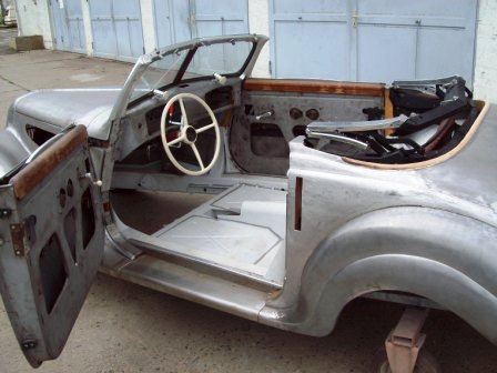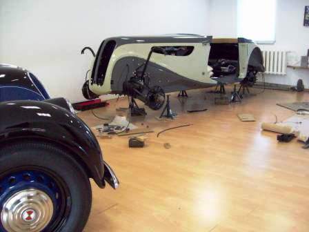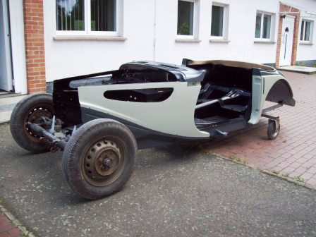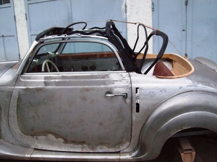 das Kabriolett nun komplett zerlegt und die Außenhaut vom Rahmen getrennt ist,