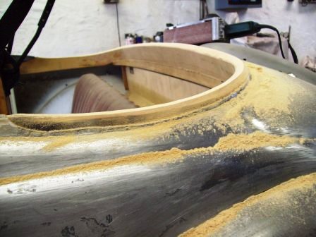 Verdeckgestänge wird probeweise montiert und die Holzspriegel werden