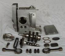Motorblock, der noch in einem, mit Kräusellack überzogenen, orange-roten
